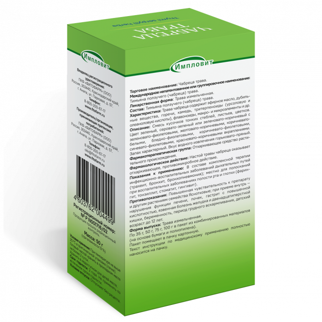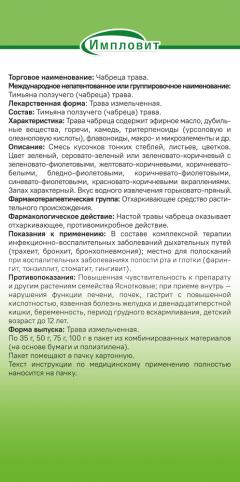 Фармакологические свойства: настой травы чабреца оказывает отхаркивающее, противомикробное действие.