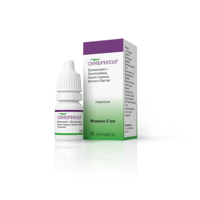 Препарат Симбринза® содержит два действующих вещества: бринзоламид и бримонидина тартрат. Эти два компонента снижают внутриглазное давление (ВГД) у пациентов с открытоугольной глаукомой (ОУГ) и внутриглазной гипертензией (ВГГ), подавляя образование водянистой влаги в цилиарном теле. Хотя и бринзоламид, и бримонидин снижают ВГД путем подавления образования водянистой влаги, их механизмы действия различны.
