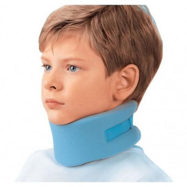 •шину устанавливают под подбородком, расположив подбородок в выемке на верхнем крае шины. Застегивают "Велкро" (застежку-липучку) на шее сзади.