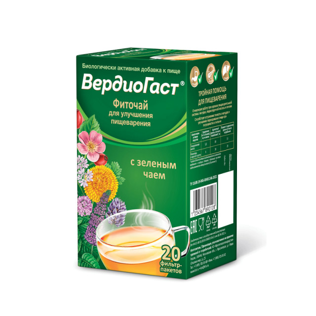 ВердиоГаст фиточай с зеленым чаем ф/п 1,5г №20