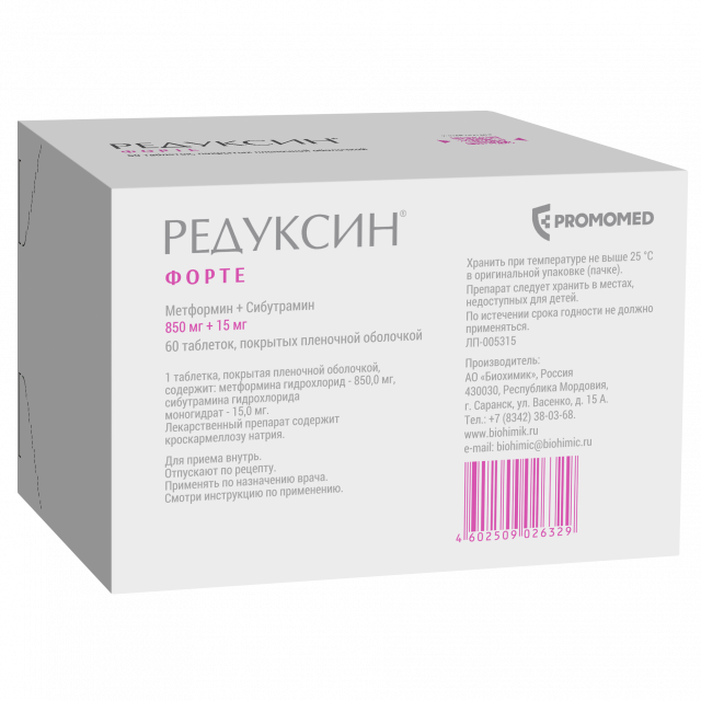 Редуксин Форте таблетки покрытые оболочкой 850мг+15мг №60