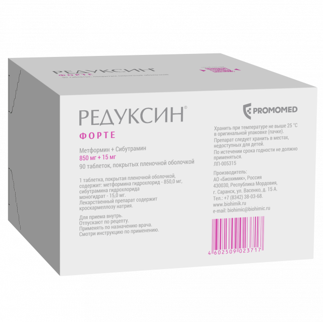 Редуксин Форте таблетки покрытые оболочкой 850мг+15мг №90