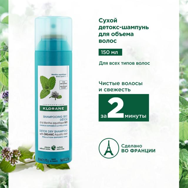 Клоран шампунь сухой Детокс Водная мята 150мл