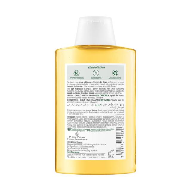 Благодаря экстракту ромашки KLORANE шампунь обладает осветляющими свойствами: он содержит апигенин (желтый пригмент), который усиливает естественный светлый цвет волос при каждом мытье. В результате волосы приобретают светлый золотистый оттенок.