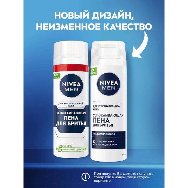 Попробуйте успокаивающую пену для бритья для чувствительной кожи без спирта* от NIVEA MEN: