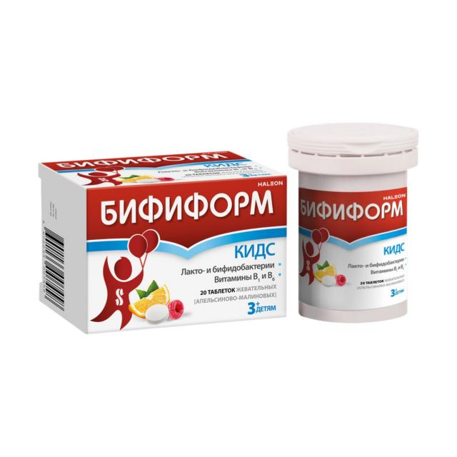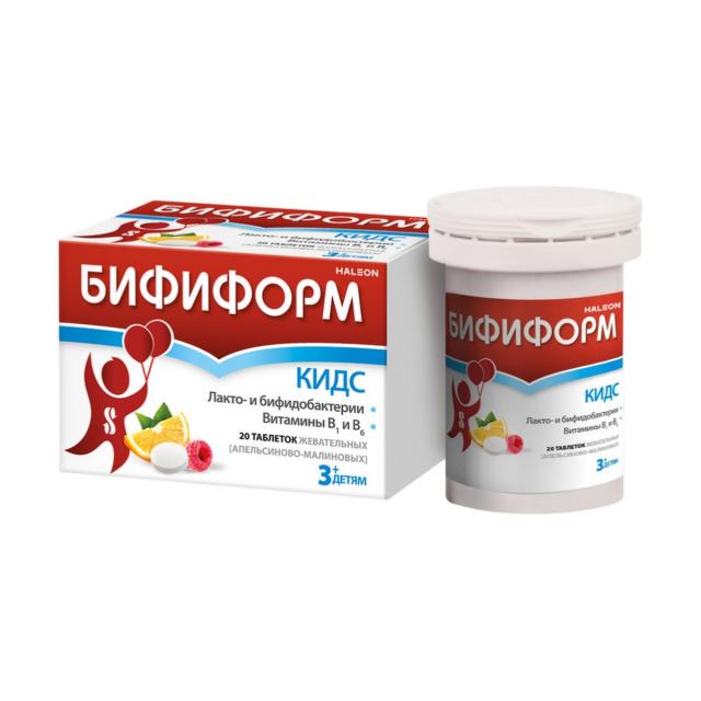 Бифиформ Кидс таблетки жевательные апельсин/малина №20