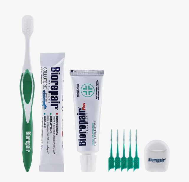 Biorepair Travel Kit Total Protection/ Биорепейр Дорожный набор Комплексная Защита не только заботится о зубах, но и восстанавливает эмаль. Все это благодаря частицам microRepair, которые являются основным действующим веществом.