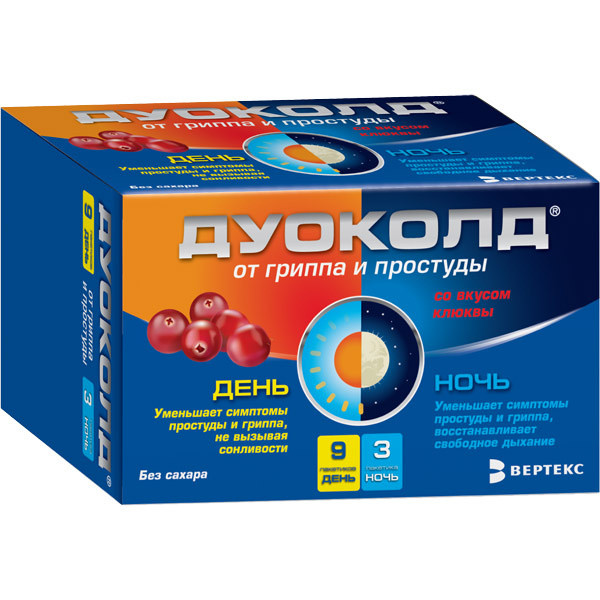 Дуоколд порошок для приготовления раствора день/ночь клюква №9+3