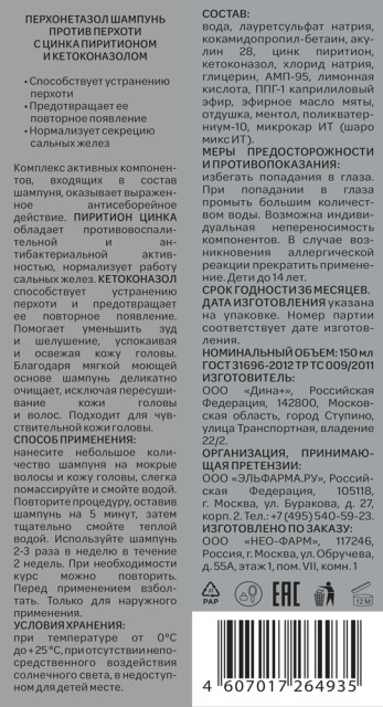 Перхонетазол шампунь кетоконазол/пиритион цинка 150мл