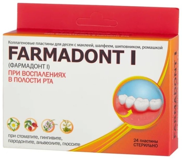 Фармадонт 1 пластина коллаг. при воспал. полости рта (маклейя/шалфей/шип./ромаш.) №24