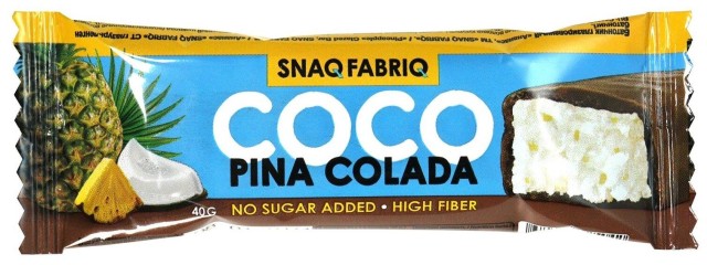 Кокос, водорастворимые волокна кукурузы, инулин(пищевые волокна), олигофруктоза(пищевые волокна), молочный шоколад(водорастворимые волокна кукурузы, какао масло, какао тертое, молоко сухое обезжиренное, эмульгатор - соевый лецитин, ароматизаторы натуральные, подсластитель - сукралоза), вода, ананас, агенты влагоудерживающие (глицерин, сорбит), соль, ароматизаторы натуральные, регулятор кислотности - лимонная кислота, антиокислитель (аскорбиновая кислота), натуральный подсластитель - стевия.