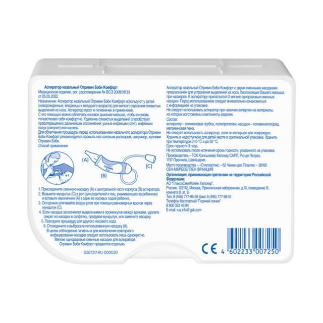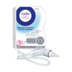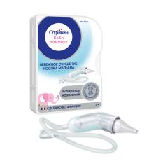 Аспиратор назальный Отривин Бэби Комфорт предназначен для детей (новорожденных, грудных, младшего возраста). Аспиратор способствует очищению носа Вашего ребенка, мягко удаляя беспокоящие его слизистые выделения.