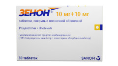ХC поступает в плазму крови в результате всасывания в кишечнике и эндогенного синтеза. Препарат Зенон® содержит эзетимиб и розувастатин, два гиполипидемических компонента, дополняющих друг друга по механизму действия. Комбинация розувастатин + эзетимиб снижает повышенную концентрацию общего холестерина (ОХС) в плазме крови, холестерина липопротеинов низкой плотности (ХС-ЛПНП), аполипопротеина В (АпоВ), триглицеридов (ТГ) и холестерина липопротеинов невысокой плотности (ХС-не-ЛПВП, рассчитывается как разность между концентрацией ОХС и концентрацией ХС-ЛПНП) и повышает концентрацию в плазме крови холестерина липопротеинов высокой плотности (ХС-ЛПВП) путем двойного ингибирования, как абсорбции, так и синтеза ХС.