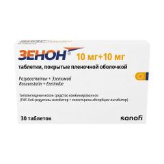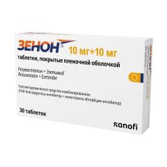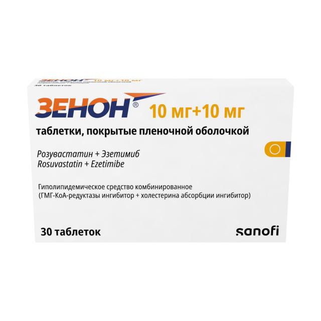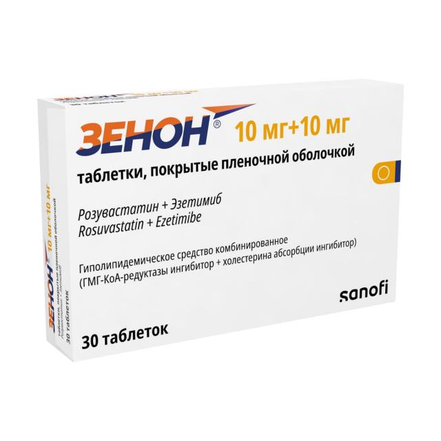 ХC поступает в плазму крови в результате всасывания в кишечнике и эндогенного синтеза. Препарат Зенон® содержит эзетимиб и розувастатин, два гиполипидемических компонента, дополняющих друг друга по механизму действия. Комбинация розувастатин + эзетимиб снижает повышенную концентрацию общего холестерина (ОХС) в плазме крови, холестерина липопротеинов низкой плотности (ХС-ЛПНП), аполипопротеина В (АпоВ), триглицеридов (ТГ) и холестерина липопротеинов невысокой плотности (ХС-не-ЛПВП, рассчитывается как разность между концентрацией ОХС и концентрацией ХС-ЛПНП) и повышает концентрацию в плазме крови холестерина липопротеинов высокой плотности (ХС-ЛПВП) путем двойного ингибирования, как абсорбции, так и синтеза ХС.