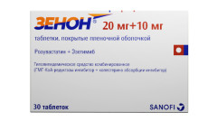 ХC поступает в плазму крови в результате всасывания в кишечнике и эндогенного синтеза. Препарат Зенон® содержит эзетимиб и розувастатин, два гиполипидемических компонента, дополняющих друг друга по механизму действия. Комбинация розувастатин + эзетимиб снижает повышенную концентрацию общего холестерина (ОХС) в плазме крови, холестерина липопротеинов низкой плотности (ХС-ЛПНП), аполипопротеина В (АпоВ), триглицеридов (ТГ) и холестерина липопротеинов невысокой плотности (ХС-не-ЛПВП, рассчитывается как разность между концентрацией ОХС и концентрацией ХС-ЛПНП) и повышает концентрацию в плазме крови холестерина липопротеинов высокой плотности (ХС-ЛПВП) путем двойного ингибирования, как абсорбции, так и синтеза ХС.