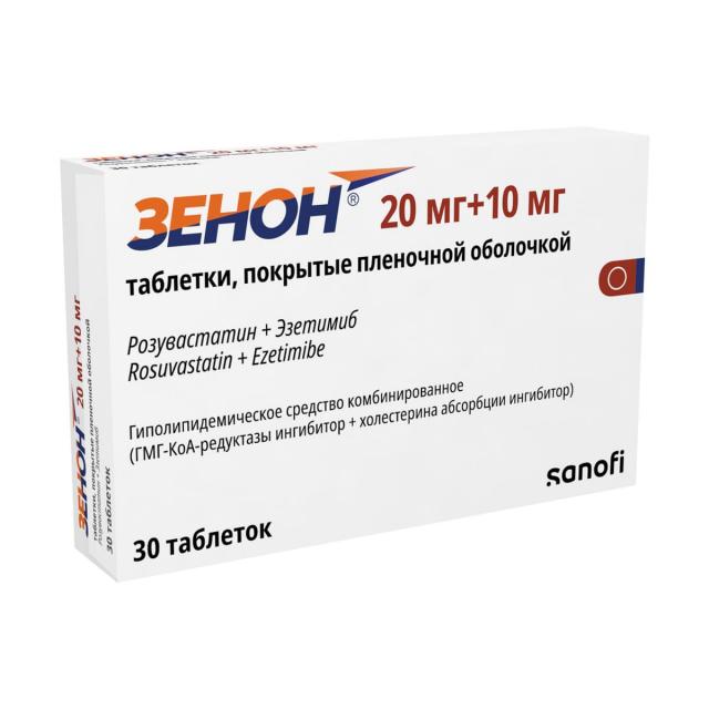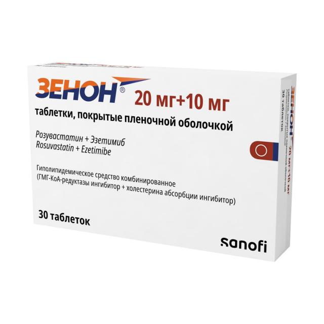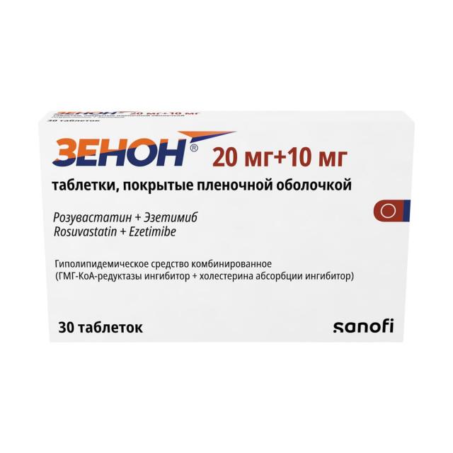 ХC поступает в плазму крови в результате всасывания в кишечнике и эндогенного синтеза. Препарат Зенон® содержит эзетимиб и розувастатин, два гиполипидемических компонента, дополняющих друг друга по механизму действия. Комбинация розувастатин + эзетимиб снижает повышенную концентрацию общего холестерина (ОХС) в плазме крови, холестерина липопротеинов низкой плотности (ХС-ЛПНП), аполипопротеина В (АпоВ), триглицеридов (ТГ) и холестерина липопротеинов невысокой плотности (ХС-не-ЛПВП, рассчитывается как разность между концентрацией ОХС и концентрацией ХС-ЛПНП) и повышает концентрацию в плазме крови холестерина липопротеинов высокой плотности (ХС-ЛПВП) путем двойного ингибирования, как абсорбции, так и синтеза ХС.
