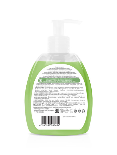 Мыло жидкое антибактериальное чайное дерево 300мл Бьютека