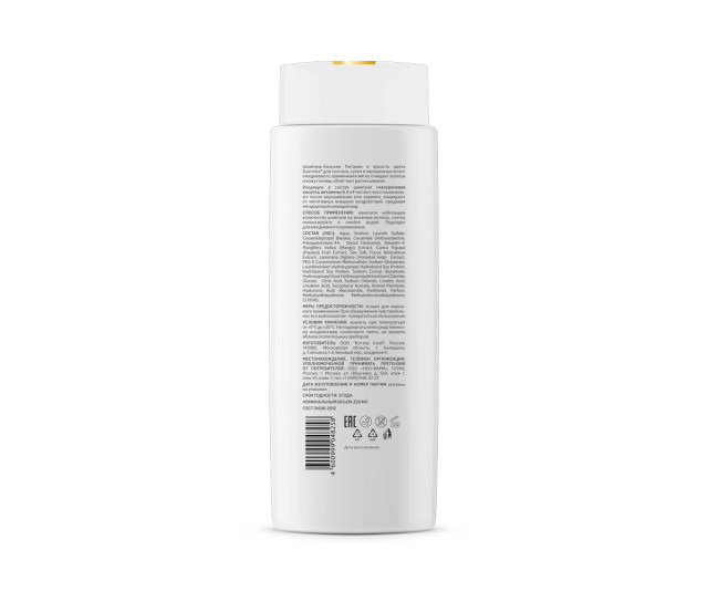Шампунь-бальзам Питание и яркость цвета БьютекаO для тусклых, сухих и окрашенных волос ежедневного применения мягко очищает волосы и кожу головы, облегчает расчесывание.
