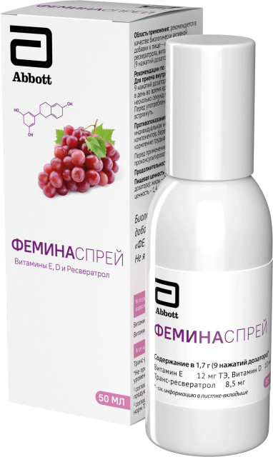 ФЕМИНАСПРЕЙ - Биологически активная добавка (БАД) к пище - Витамины Е, D и Ресвератрол
