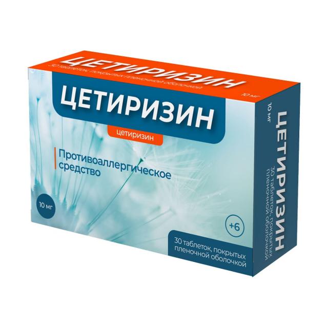 Действующее вещество: цетиризина дигидрохлорид – 10 мг.