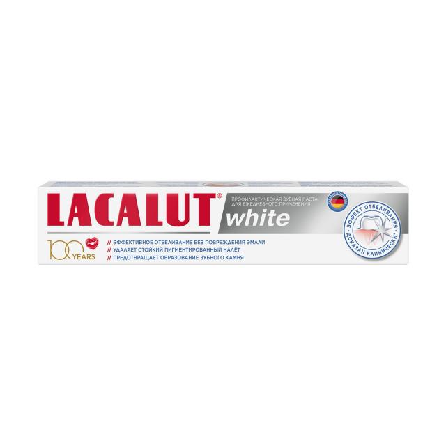 Зубная паста LACALUT white выпускается в тубах 30, 50, 75 или 100 мл, в коробке 1 туба.