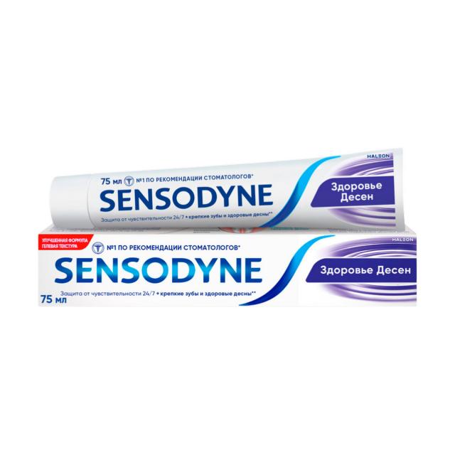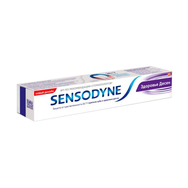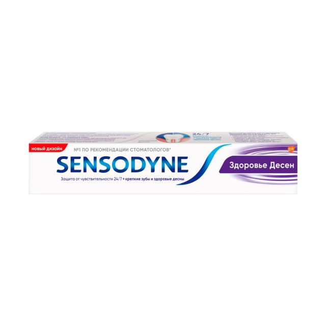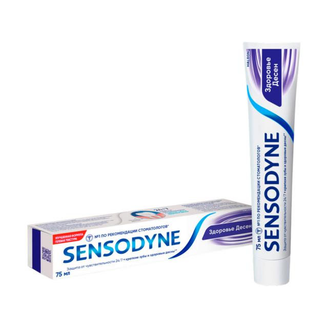 Зубная паста Sensodyne Здоровье Десен эффективно снижает повышенную чувствительность зубов, обеспечивает защиту от чувствительности в течение всего дня, а также поддерживает здоровье десен, замедляя рост бактерий благодаря содержанию цитрата цинка. Зубная паста Sensodyne Здоровье Десен также защищает от кариеса благодаря содержанию фтора.