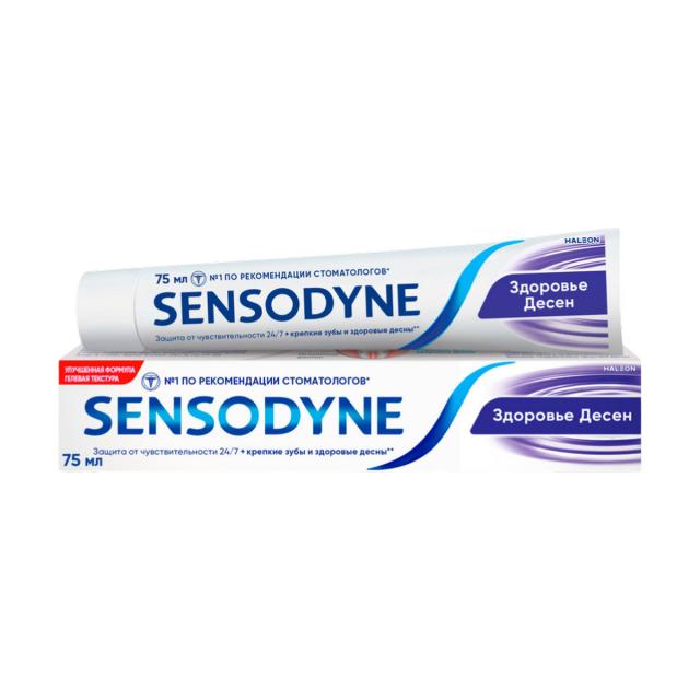 Sensodyne - бренд №1 по рекомендации* стоматологов для чувствительных зубов. Зубная паста Sensodyne Здоровье Десен эффективно снижает повышенную чувствительность зубов**, обеспечивает защиту от чувствительности в течение всего дня, а также поддерживает здоровье десен, замедляя рост бактерий благодаря содержанию цитрата цинка1. Зубная паста Sensodyne Здоровье Десен также защищает от кариеса** благодаря содержанию фтора.