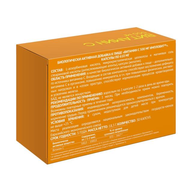Состав: L-аскорбиновая кислота, антислеживающие агенты микрокристаллическая целлюлоза и магниевая соль стеариновой кислоты, капсула (желатин).