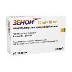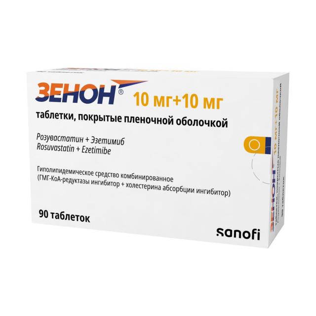 ХС поступает в плазму крови в результате всасывания в кишечнике и эндогенного синтеза. Препарат Зенон® содержит эзетимиб и розувастатин, два гиполипидемических компонента, дополняющих друг друга по механизму действия. Комбинация розувастатин + эзетимиб снижает повышенную концентрацию общего холестерина (ОХС) в плазме крови, холестерина липопротеинов низкой плотности (ХС-ЛПНП), аполипопротеина В (АпоВ), триглицеридов (ТГ) и холестерина липопротеинов невысокой плотности (ХС-не-ЛПВП, рассчитывается как разность между концентрацией ОХС и концентрацией ХС-ЛПНП) и повышает концентрацию в плазме крови холестерина липопротеинов высокой плотности (ХС-ЛПВП) путем двойного ингибирования, как абсорбции, так и синтеза ХС.