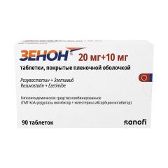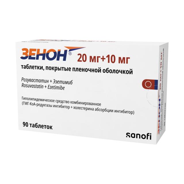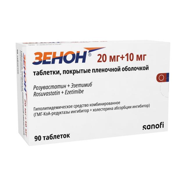 ХС поступает в плазму крови в результате всасывания в кишечнике и эндогенного синтеза. Препарат Зенон® содержит эзетимиб и розувастатин, два гиполипидемических компонента, дополняющих друг друга по механизму действия. Комбинация розувастатин + эзетимиб снижает повышенную концентрацию общего холестерина (ОХС) в плазме крови, холестерина липопротеинов низкой плотности (ХС-ЛПНП), аполипопротеина В (АпоВ), триглицеридов (ТГ) и холестерина липопротеинов невысокой плотности (ХС-не-ЛПВП, рассчитывается как разность между концентрацией ОХС и концентрацией ХС-ЛПНП) и повышает концентрацию в плазме крови холестерина липопротеинов высокой плотности (ХС-ЛПВП) путем двойного ингибирования, как абсорбции, так и синтеза ХС.