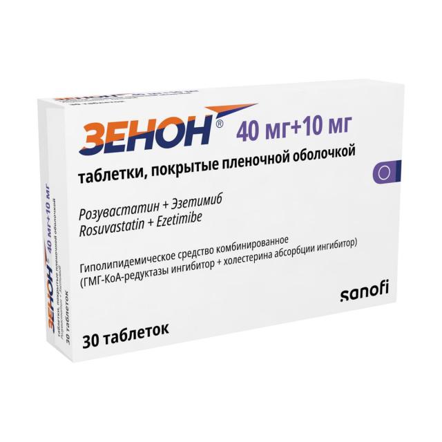 ХС поступает в плазму крови в результате всасывания в кишечнике и эндогенного синтеза. Препарат Зенон® содержит эзетимиб и розувастатин, два гиполипидемических компонента, дополняющих друг друга по механизму действия. Комбинация розувастатин + эзетимиб снижает повышенную концентрацию общего холестерина (ОХС) в плазме крови, холестерина липопротеинов низкой плотности (ХС-ЛПНП), аполипопротеина В (АпоВ), триглицеридов (ТГ) и холестерина липопротеинов невысокой плотности (ХС-не-ЛПВП, рассчитывается как разность между концентрацией ОХС и концентрацией ХС-ЛПНП) и повышает концентрацию в плазме крови холестерина липопротеинов высокой плотности (ХС-ЛПВП) путем двойного ингибирования, как абсорбции, так и синтеза ХС.