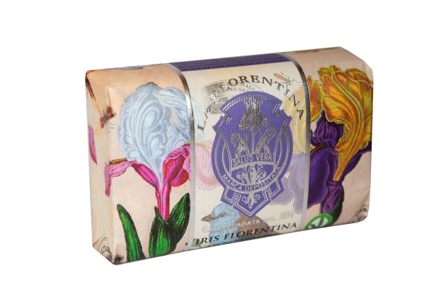 Ирисовое мыло в обертке из вручную расписанной флорентийской бумаги станет отличным подарком по любому случаю, украсит ваш дом и наполнит его деликатным и нежным ароматом свежих ирисов.