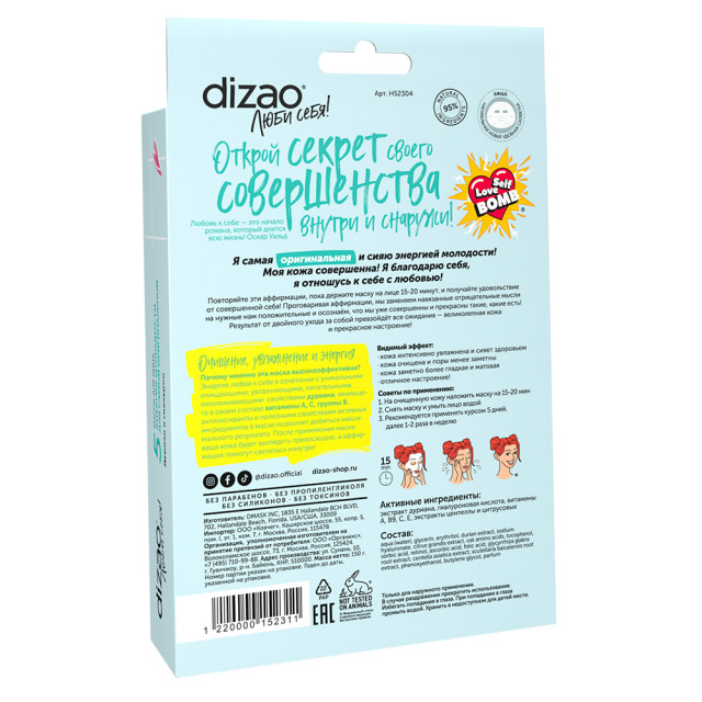 Дизао Люби Себя маска для лица дуриан/гиалурон №5