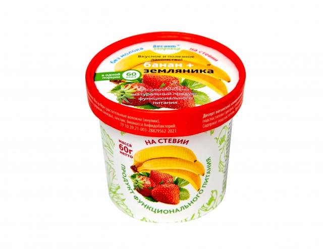 Десерт веганский замороженный банановый с кусочками земляники, обогащенный бифидобактериями «Банан+Земляника».