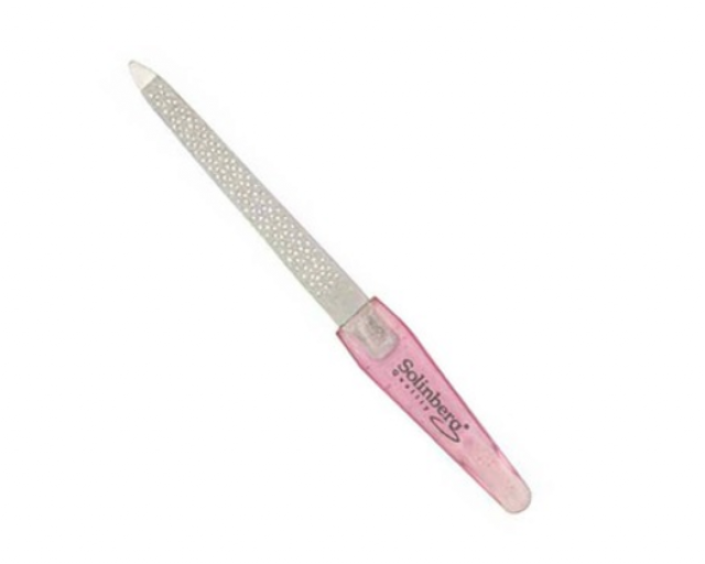 Пилочка металлическая Solinberg с перфорацией 12 см. Имеет пластиковую ручку и рабочую часть с алмазным покрытием и перфорацией,