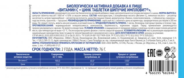 Витамин С + Цинк таблетки шипучие №20 Импловит
