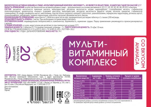 Биологически активная добавка к пище «Мультивитаминный комплекс Импловит» со вкусом ананаса
