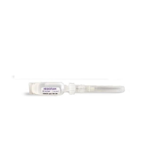 Фармакокинетика: После введения одной дозы 20 мг внутримышечно, максимальная концентрация в сыворотке наблюдается через 30-60 минут и в среднем составляет 25 нг/мл. Период полувыведения составляет в среднем 5 часов. После внутривенного введения дозы 20 мг, период полувыведения (Т1/2) в среднем составляет 4 часа. Связывание с белками плазмы составляет 71-76%. Биотрансформация значительна, идентифицированы три основных метаболита: десметилнефопам, нефопам N-оксид, N-глюкуронид нефопама.