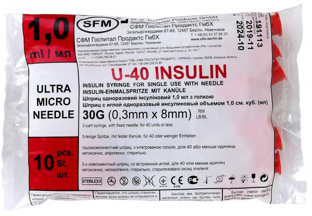 Шприц инсул. 1мл U-40 (0,30x8мм) 30G №10 СФМ