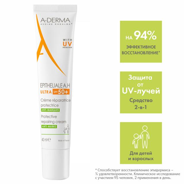 A-DERMA EPITHELIALE A.H ULTRA Защитный восстанавливающий крем SPF 50+ 40 мл