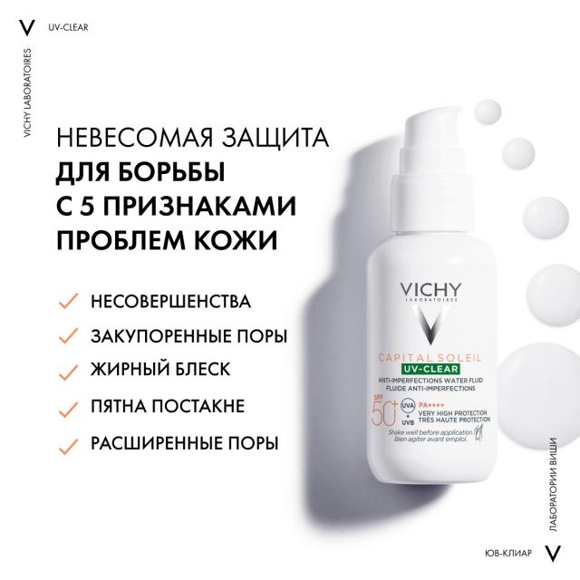 Виши Капитал Солей флюид cолнцезащитный для лица от несовершенств SPF50 40мл