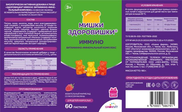 Здоровишки Иммуно витаминно-минеральный комплекс мармеладные пастилки жевательные №60 Гроувит