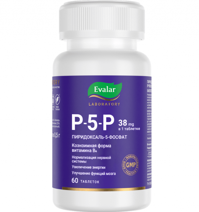 Evalar Laboratory выпускает активную форму витамина В6, которая не требует дополнительных преобразований в организме, быстро всасывается и демонстрирует лучшую степень усвоения: пиридоксаль-5-фосфат (P-5-P).