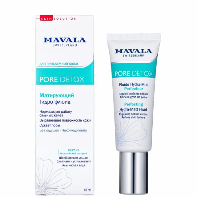 Матирующий гидрофлюид Mavala Pore Detox Perfecting Hydra-Matt Fluid — это отличный вариант для того, чтобы придать коже ухоженный и безупречный внешний вид. Негативное воздействие внешних факторов окружающей среды, стрессы и гормональные сбои приводят к появлению несовершенств на коже. На лице видны расширенные поры и жирный блеск. Матирующий гидрофлюид улучшает общее состояние эпидермиса, сужает поры, устраняет жирный блеск, регулирует работу сальных желез. Специальная формула средства содержит такой компонент, как перлит в виде ультралегкой минеральной пудры, которая мгновенно матирует кожу. А входящий в состав комплекс микропигментов превосходно маскирует все несовершенства.