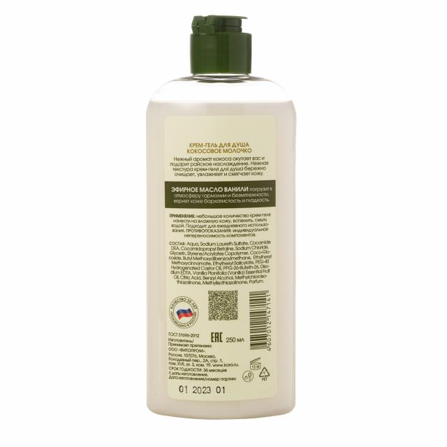 Кора Дэйли Сикрет гель для душа Кокосовое молочко 250мл 47141