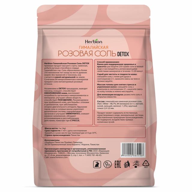 ГИМАЛАЙСКАЯ розовая соль для ванн DETOX, 1 кг, крупный помол