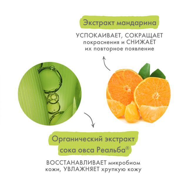 Экстракт мандарина: успокаивает и уменьшает повторное появление покраснения. Мгновенно и надолго снимает ощущение дискомфорта и жжения.