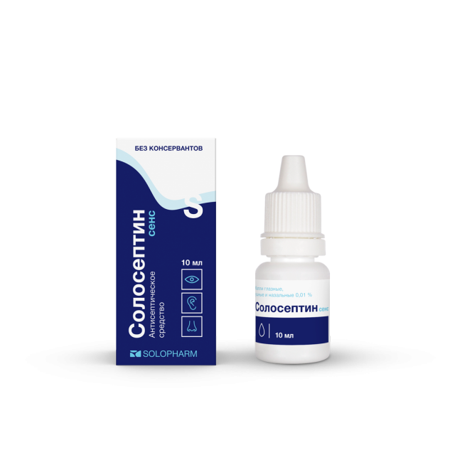 Солосептин сенс капли глазные/назальные/ушные 0,01% 10мл