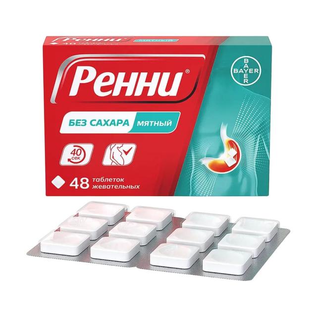 Ренни таблетки жевательные без сахара мята №48