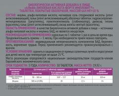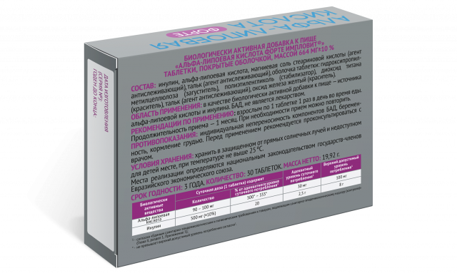 БИОЛОГИЧЕСКИ АКТИВНАЯ ДОБАВКА К ПИЩЕ «АЛЬФА-ЛИПОЕВАЯ КИСЛОТА ФОРТЕ ИМПЛОВИТ®»